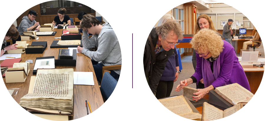 In January of 2017 we launched “Manuscripts in the Curriculum I,” which allowed colleges and universities to borrow a group of medieval manuscripts for a semester to use for teaching and exhibitions. You can read about it here and here. Our manuscripts have travelled from British Columbia, Canada (the University of Victoria), to Malibu, California (Pepperdine University), to Rochester, New York (the University of Rochester and Rochester Institute of Technology), to Albany, New York (SUNY at Albany). They are currently at the University of Iowa in Iowa City.