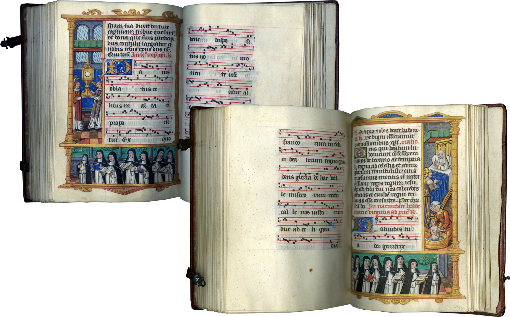 Dominican nuns carrying their Processionals at the Royal Abbey of Poissy. TM 1019, Processional, France (Paris), c. 1505-1515, ff.119v-120 and ff. 139v-140