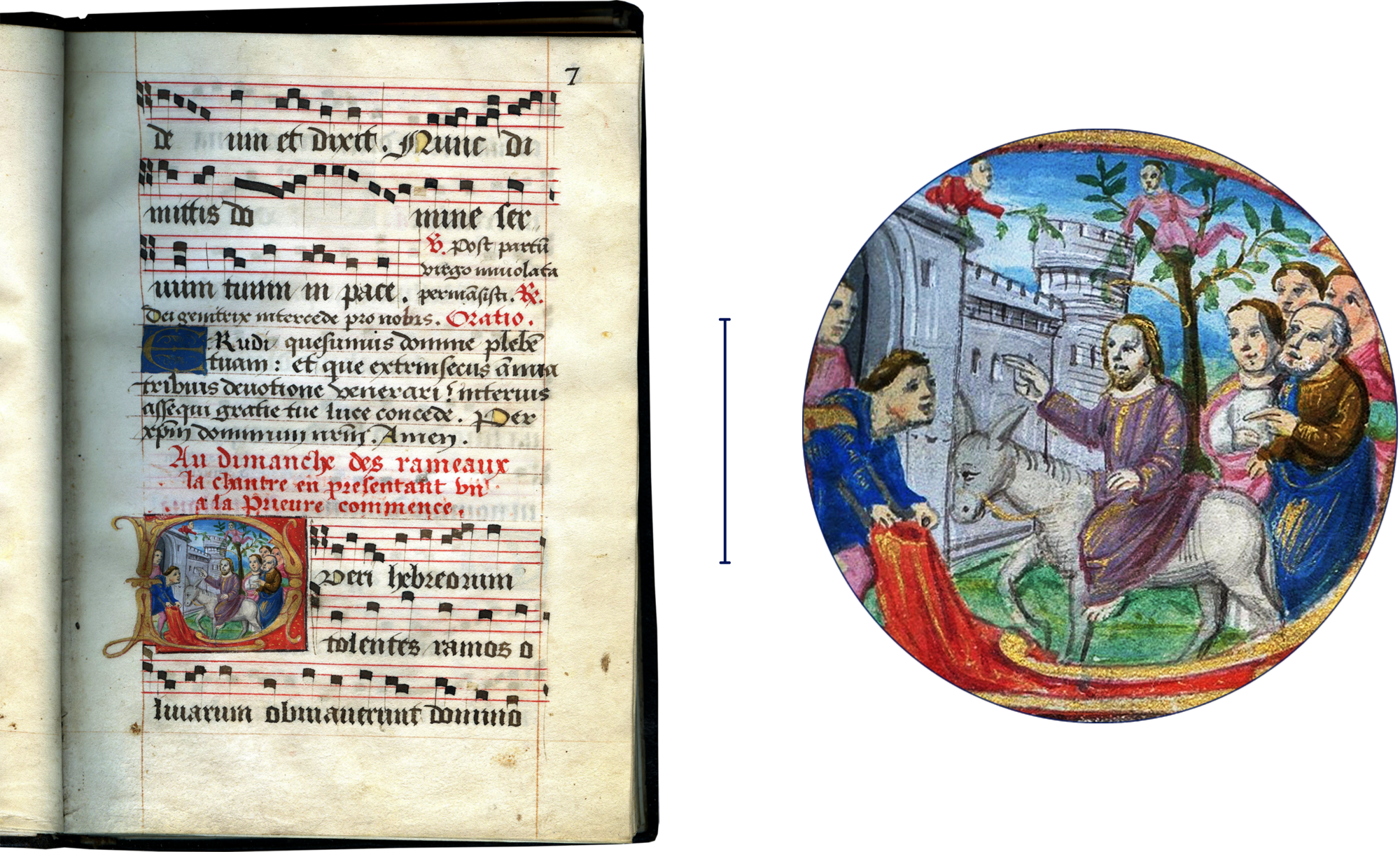 Medieval processions reenacted Christ’s entry into Jerusalem every Palm Sunday, as shown in this Processional from a convent of Dominican nuns in Rouen. TM 1031, Processional, France (Rouen), c. 1520-1530, c. 1525-1550, 1674.