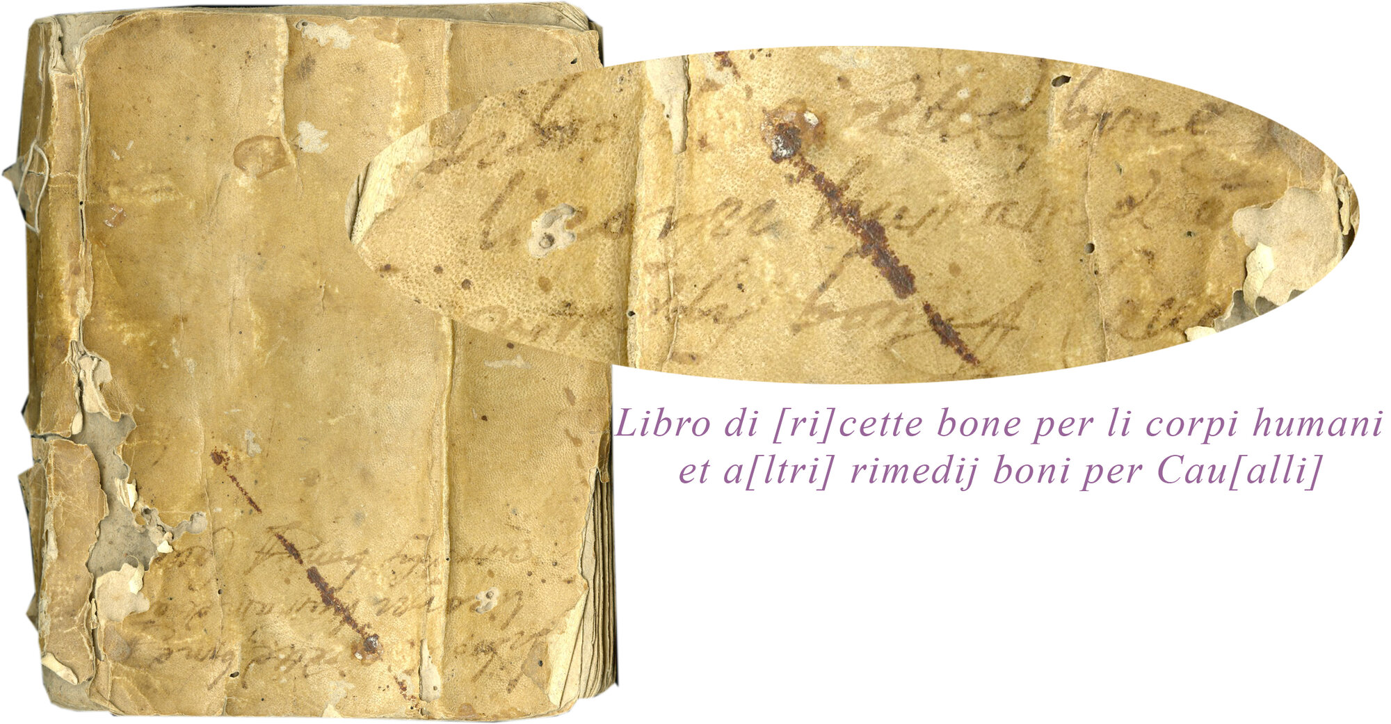 Look too briefly at the book below and it might trick you. The faded title written hastily upon its modest binding proclaims it to be a book of good recipes for human bodies and for horses.