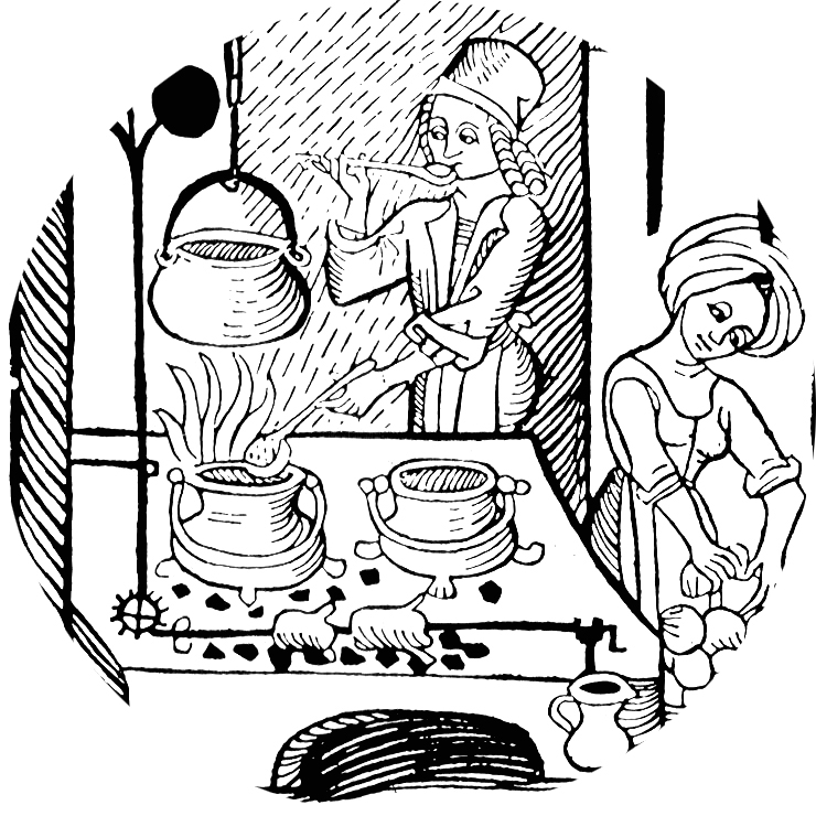 Detail from woodcut depicting a kitchen scene, from a printed recipe book, Kuchemaistrey, Nuremberg, 1485