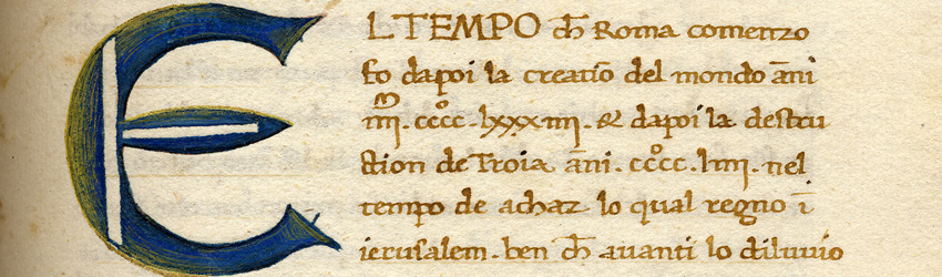 Because he acquired manuscripts in such quantity, one wonders how many of them passed into Phillipps’s library without ever receiving his close attention. That said, there is reason to believe that he did take an interest in the manuscript pictured above and below, our copy of Cronica degli pontifici e degli imperatori, a possibly unique Italian translation and continuation of an immensely popular thirteenth-century Latin chronicle.