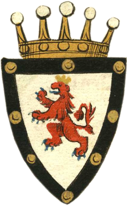 The two remaining types of crown are coronets denoting the ranks of duke and count. In one instance the ducal coronet surmounts the combined arms of David II, king of Scotland, and his English wife – perhaps a slight on Scotland, which England had attempted to annex in both the fourteenth and sixteenth centuries. The other coronet more predictably accompanies the combined arms of John I, Count of Holland, and his English wife.