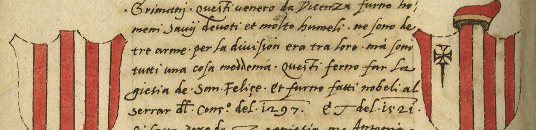 The arms of the Grimani family in a Venetian heraldic miscellany, TM 802, f. 16v (detail), Italy (Venice), c. 1565-1567