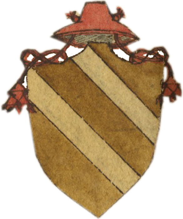 And there’s more. The doge’s crown was not the only kind of headgear that a Venetian might be honored to set atop his arms. When a member of one of these families was appointed to high ecclesiastical position, specifically cardinal or pope, the appropriate headgear has also been included.