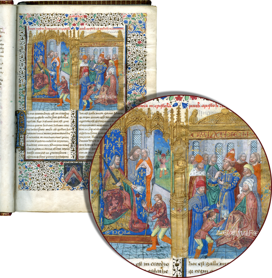 The illuminated frontispiece was added c. 1500 to a manuscript owned by Jean II Budé; Haimo of Auxerre, Commentary on the Pauline Epistles, France (Paris), c. 1460-1480 (before 1481), TM 908