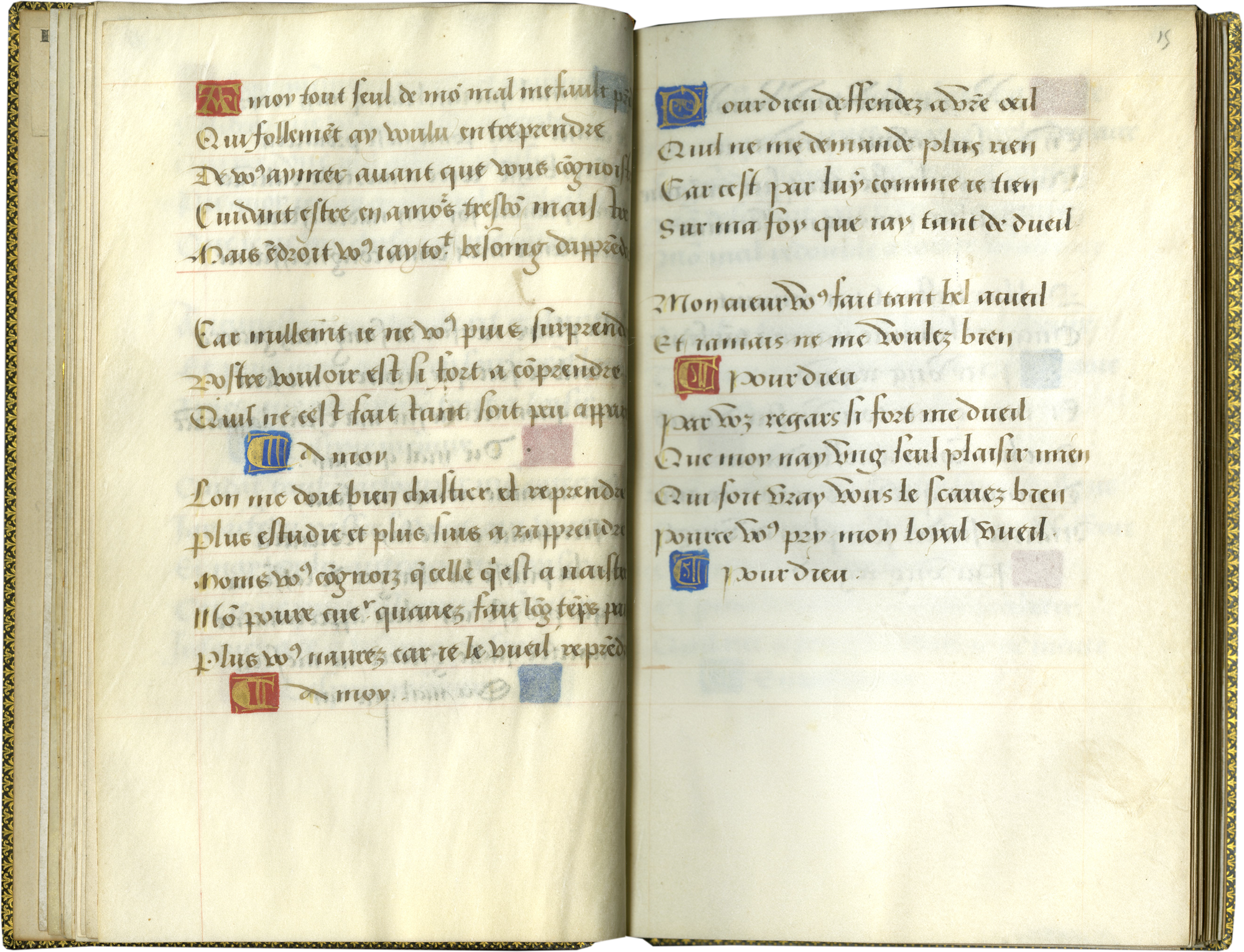 Two different kinds of rondeau are on display in this opening from TM 860, ff. 14v-15