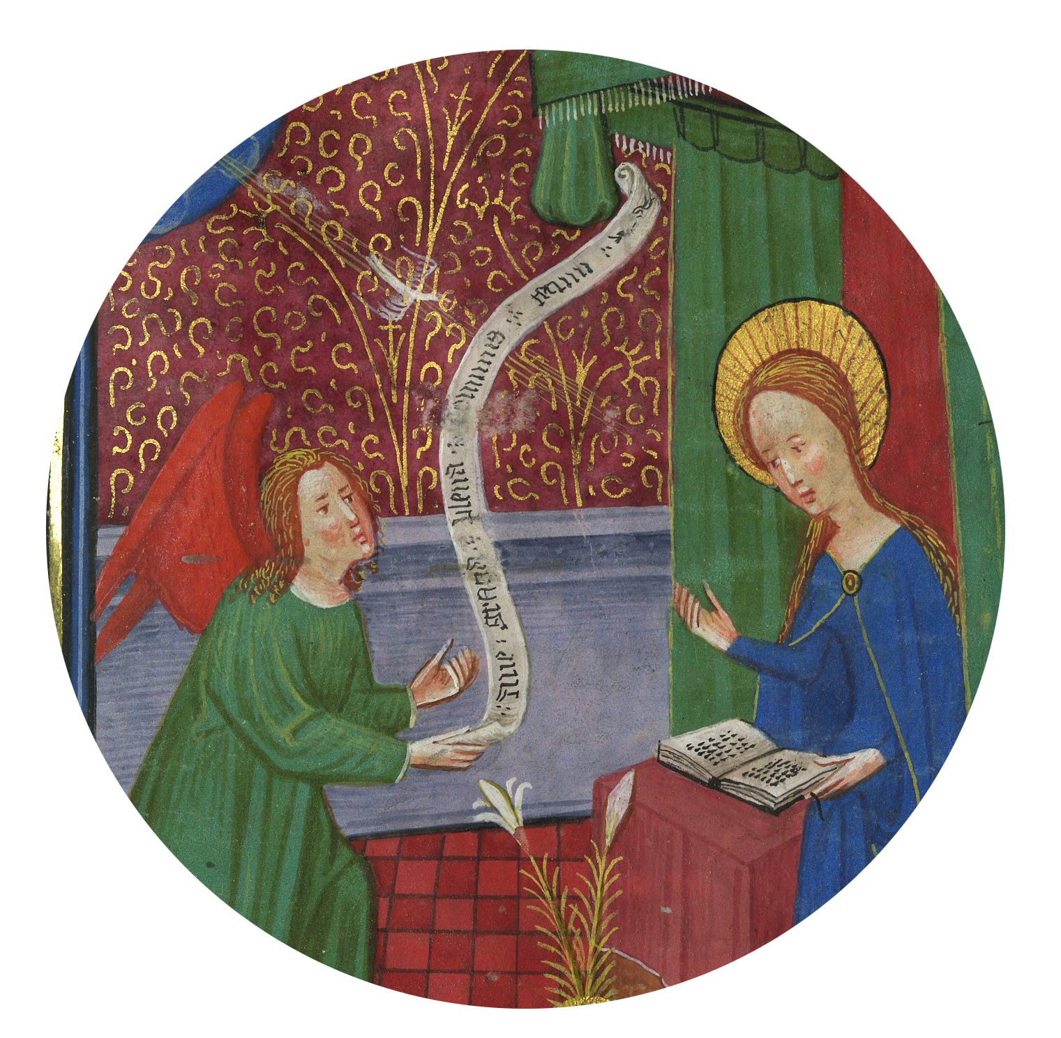 BOH 126, Villeneuve Hours, Belgium, Bruges, c. 1450, f. 53, Annunciation (detail)