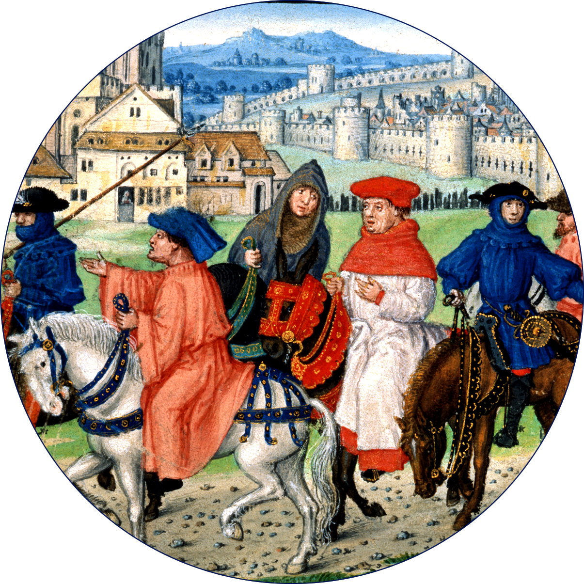 Pilgrims on the road to Canterbury, from John Lydgate’s Prologue of the Siege of Thebes, London, c. 1457–1460: Royal MS 18 D II, f. 148.