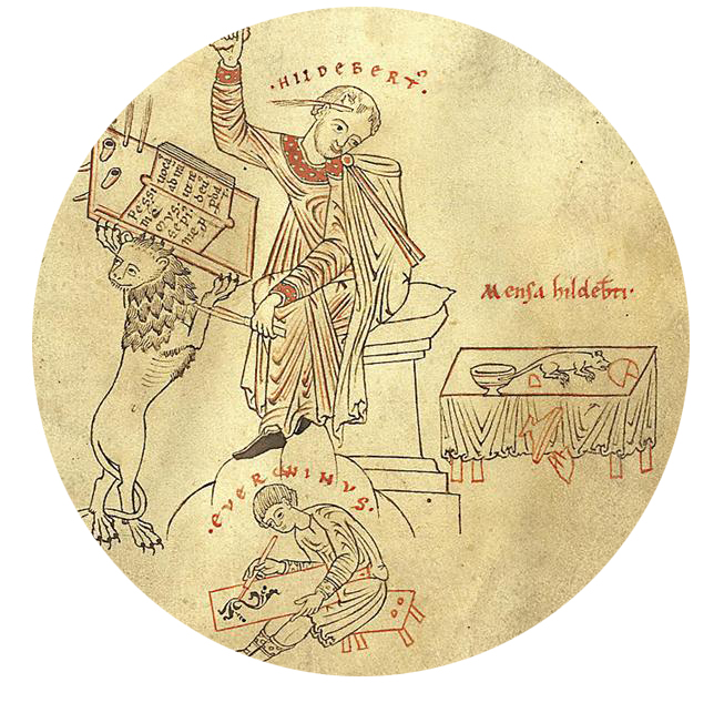 Look at the mouse in this image. You can imagine the disastrous results if it jumped on the pages the scribe is copying, scattering them to all corners of the room (the text of the book that Hildebertus is copying begins “Wretched mouse who angers me so often”).