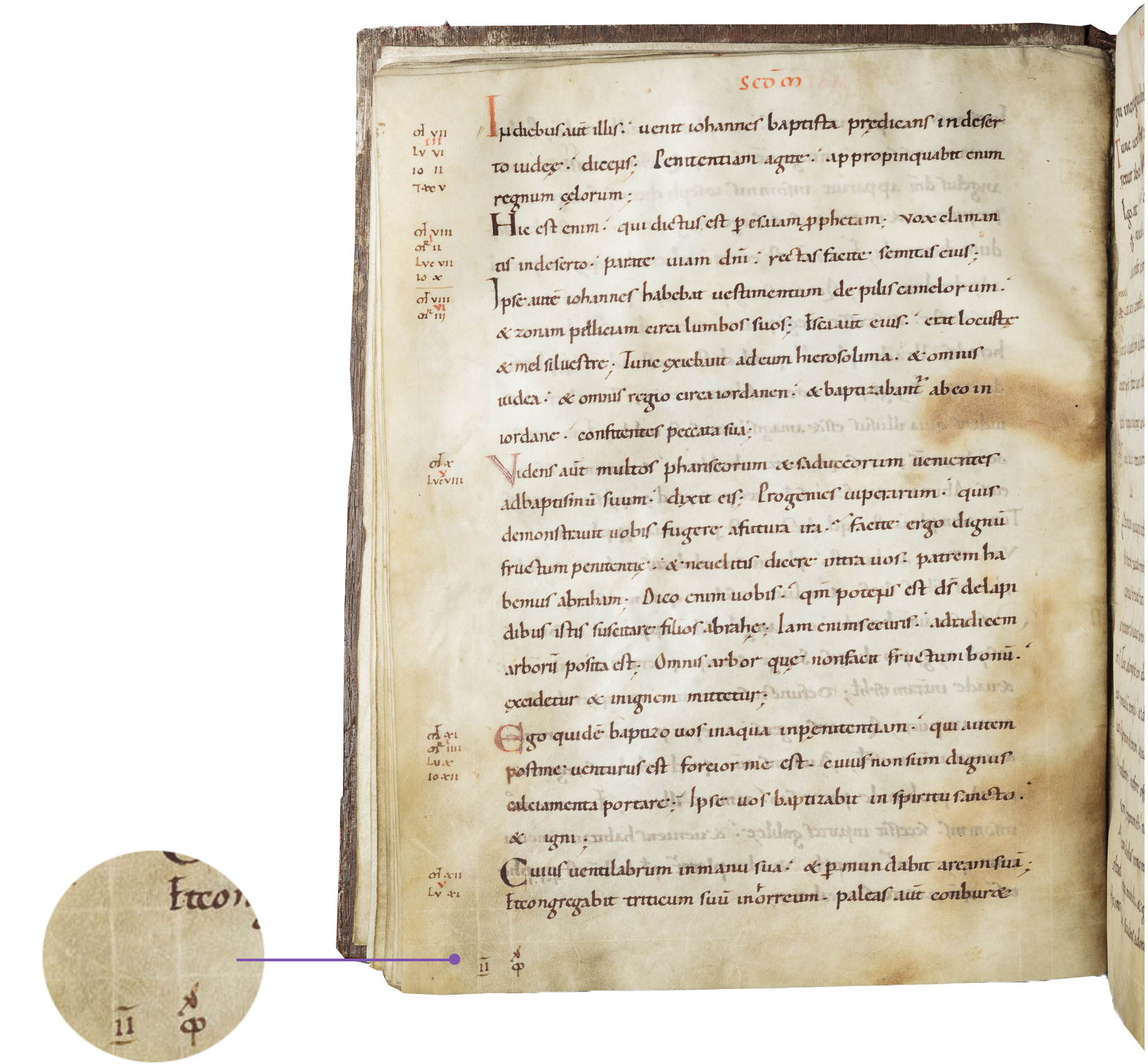 Here is an early example of a numbered quire in a tenth-century Gospel Book; Liesborn Gospels, Northwestern Germany (Liesborn Abbey?), c. 980-1000, p. 34