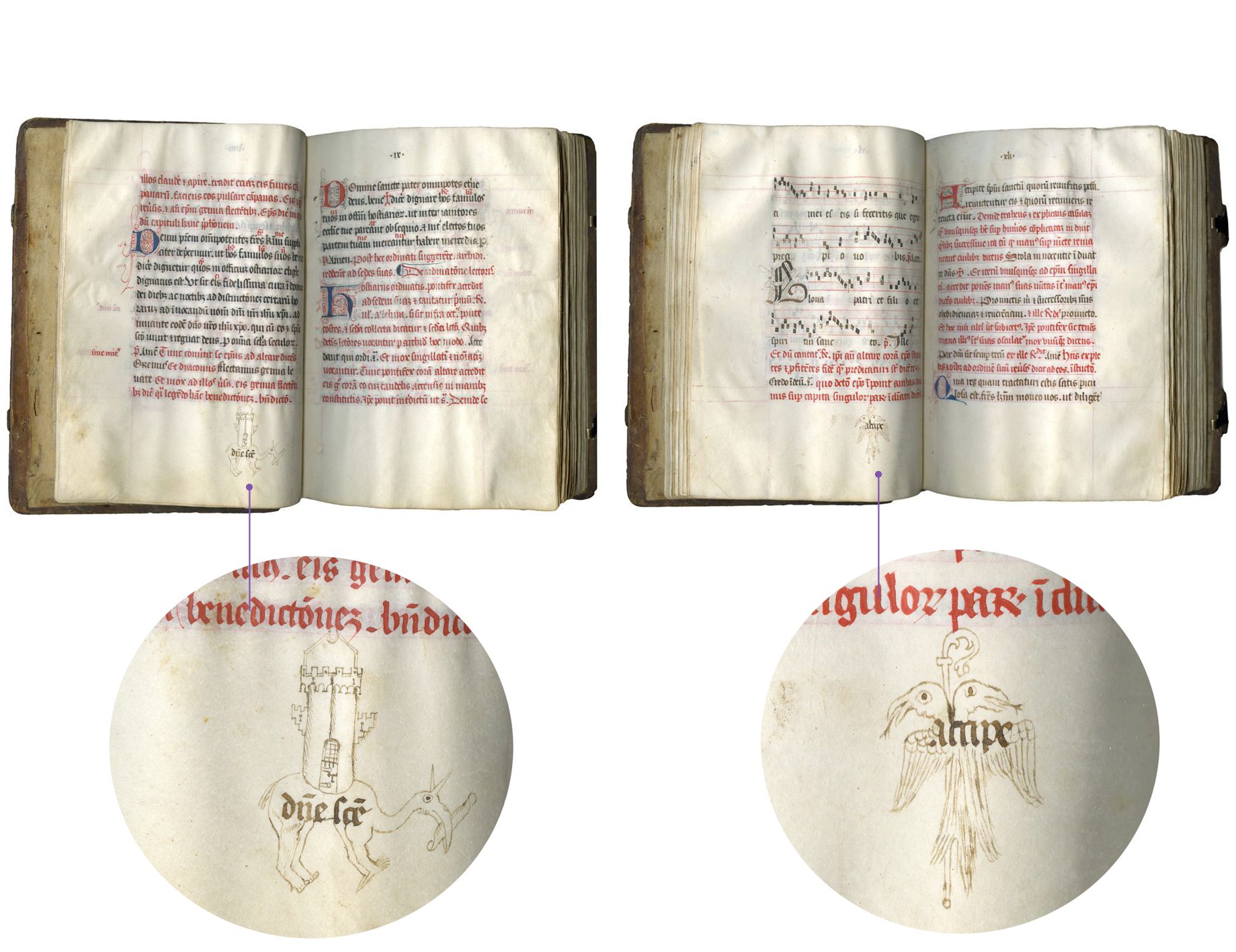 TM 785, Choir Breviary, Italy, s. 1260-1300, f. 33v and f. 45v