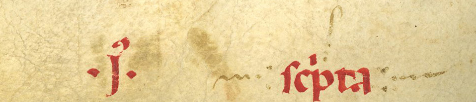 At some point in the twelfth century, some clever person came up with the idea of writing the first word of the next quire at the end of each quire; catchwords are a very effective means of keeping things in order, and they also make it impossible to mix up quires meant for two different books. (In the thirteenth century an even more sophisticated system of leaf and quire signatures appeared – but again, something to discuss in a later post.)