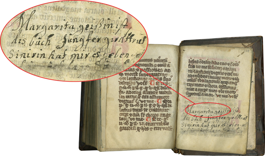 By the seventeenth century the manuscript was owned by two German women, who left their names in the book, suggesting continued devotional use by women, but in this case by lay women.
