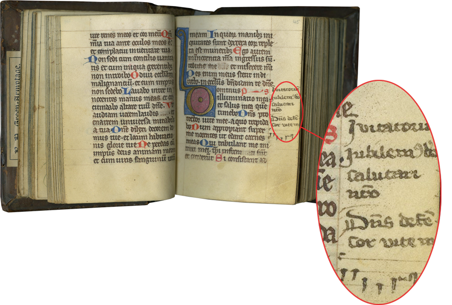 Our Psalter was certainly used by the nuns during the Divine Office, the daily liturgical prayer celebrated by nuns, monks, and other religious, including the secular clergy. Prayers and music for the Office were added in the margins throughout the volume. Many surviving manuscripts known to have been owned and used by women surviving from the Middle Ages and later are liturgical volumes.