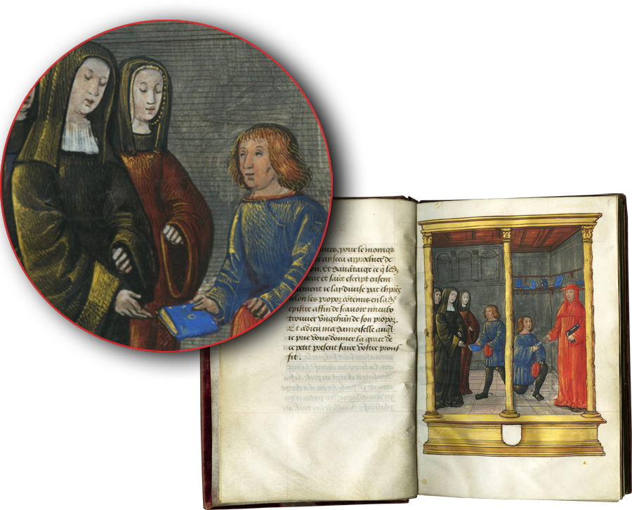 and finally, an exquisite illuminated copy of Jerome’s Letter to Furia (TM 935) on being a widow, in a unique French translation (we’ve talked about that book before in this blog, “Modern Love”, but since then in a recent publication Dr. Katja Airaksinen-Monier has suggested this volume may have been made for Louise of Savoy (1476-1531), regent of France and mother of King Francis I and Marguerite of Navarre).