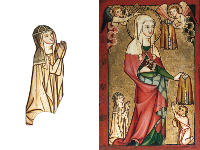A Premonstratensian nun depicted in the Altenberg altarpiece of 1334; Städel Museum, Frankfurt-am-Main, as illustrated in “Clothes Make the Premonstratensian Sister,” by Yvonne Seale.