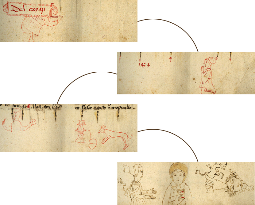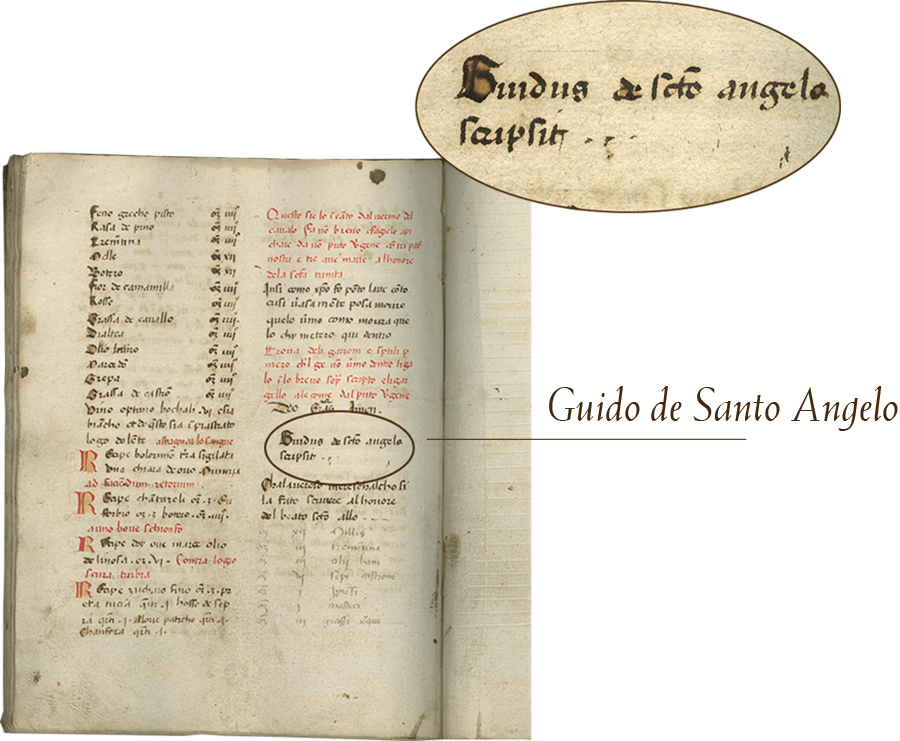 An unusual marginal intervention by a scribe occurs in manuscript called the “Book of the Health of Horses” by Laurentius Rusius, in its Italian translation, written most probably for the ducal farrier at the court of Duke Niccolo III d’Este. The manuscript treats the diseases of the horse and how to cure them, the eyes, mouth, hoofs, back, and the influences of the moon on equine maladies. The scribe signed his name in a colophon “Guido de Santo Angelo,” where he also expressed his devotion to the patron saint of horses, St. Eligius.