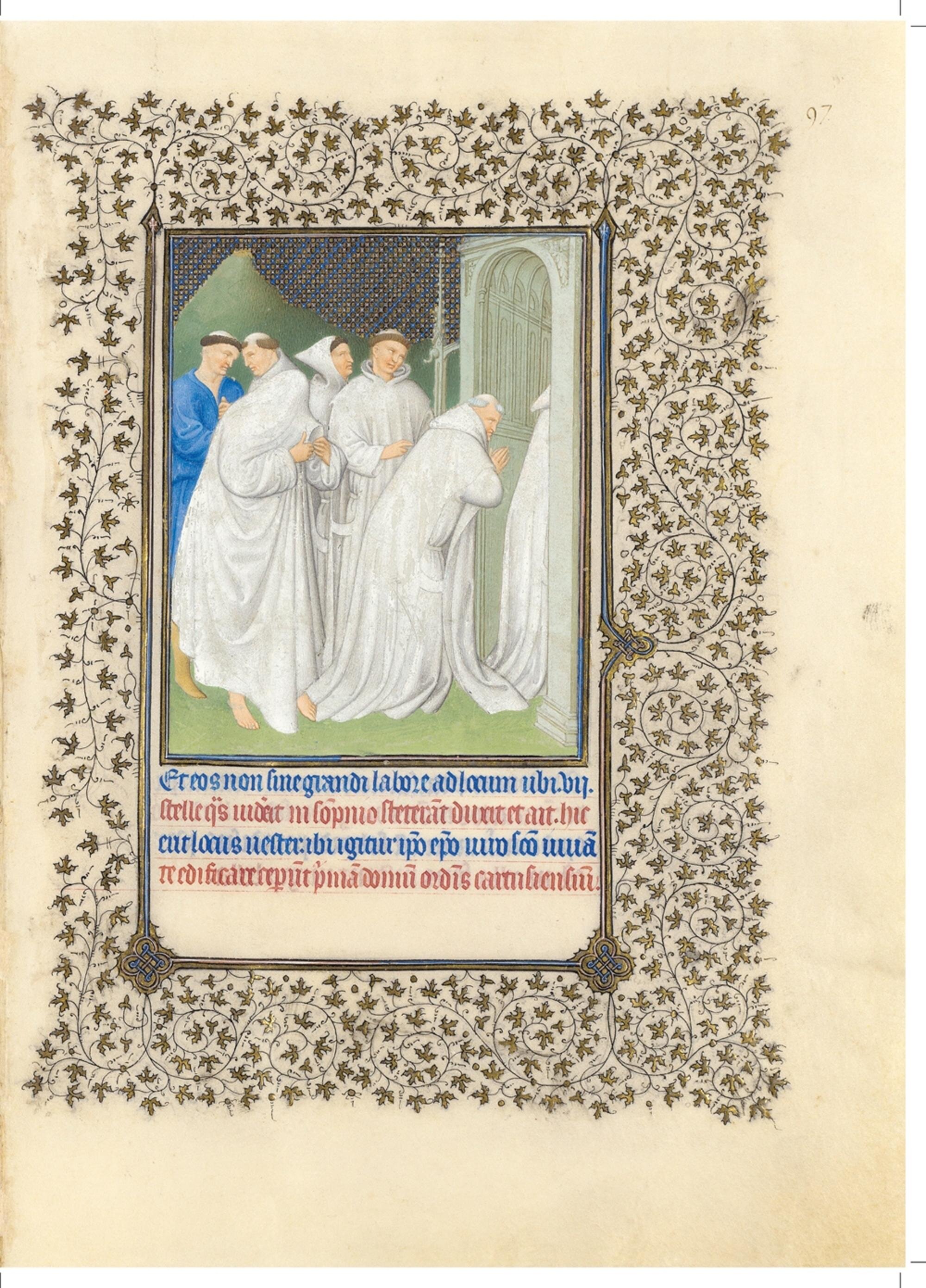 St. Bruno and companions entering the Grande Chartreuse; Belles Heures of Jean de France, duc de Berry, 1405–1408/9 by Paul Herman and Jean de Limbourg, The Metropolitan Museum of Art, New York, The Cloisters Collection, 1954 (54.1.1), f. 97.
