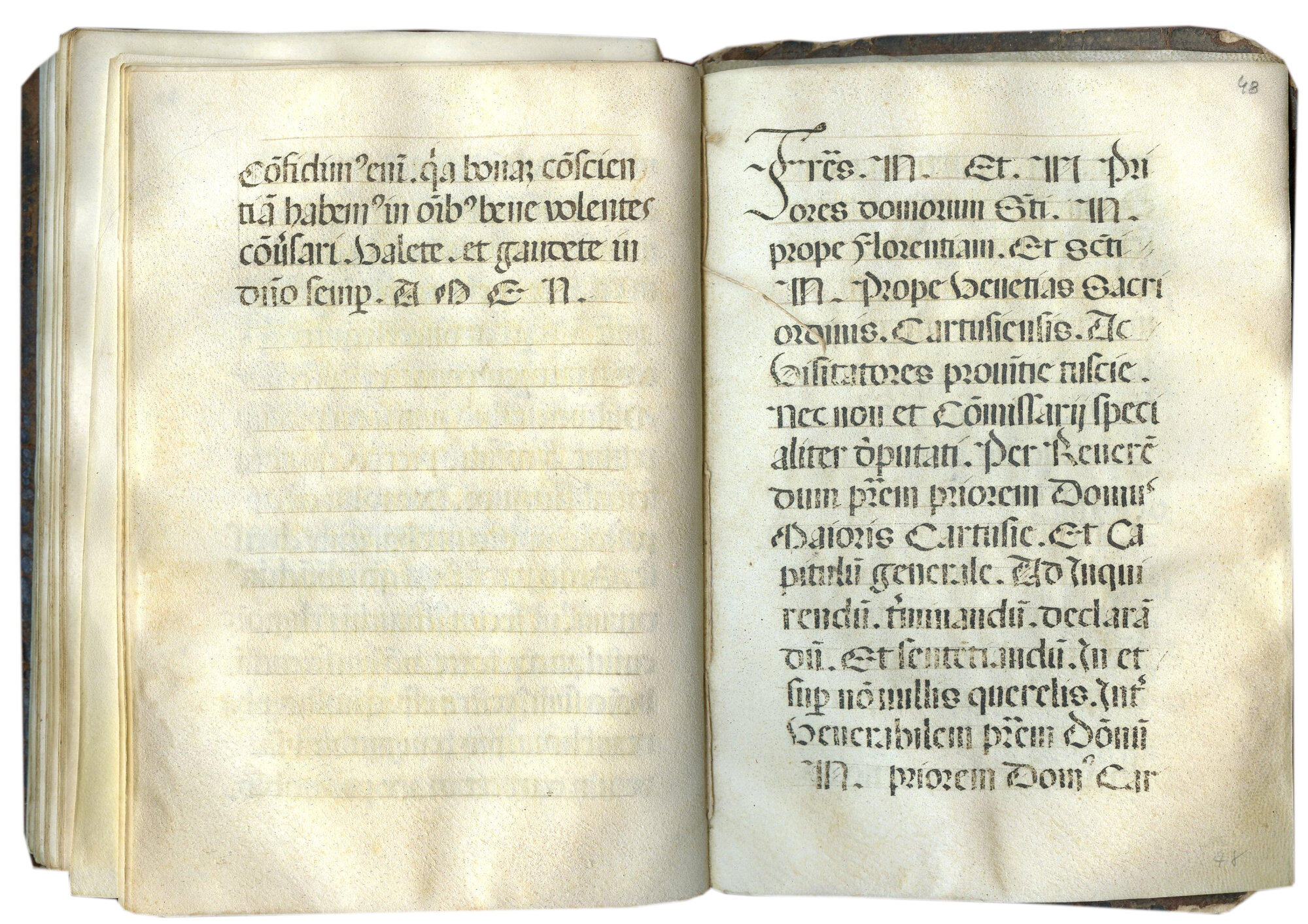 It concludes with the results of a visitation by the priors of the Carthusian charterhouses near Florence and Venice, settling a dispute between the Prior of the charterhouse of St. John the Evangelist at Calci near Pisa and one of his monks, dated June 22, 1534. The names are not included, but are represented by the letter “N.”