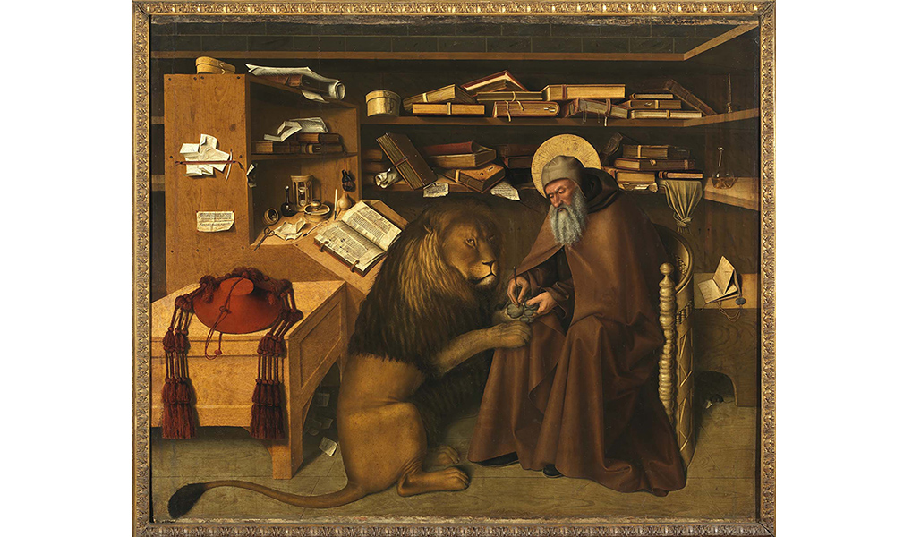 Take Saint Jerome (d. 420 AD), for example. This erudite early Christian Church Father read three ancient languages and is most celebrated as translator of the Vulgate. We always see him in his study pouring over his books, his faithful lion, from whose paw he extracted a thorn, curled up at his feet.
