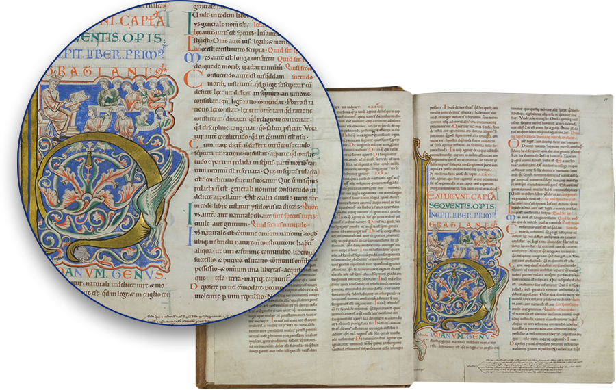 Gratian teaching law, Saint-Omer, Bibliothèque d’agglomération, MS 453, f. 10, Northern France, c. 1163-1176.