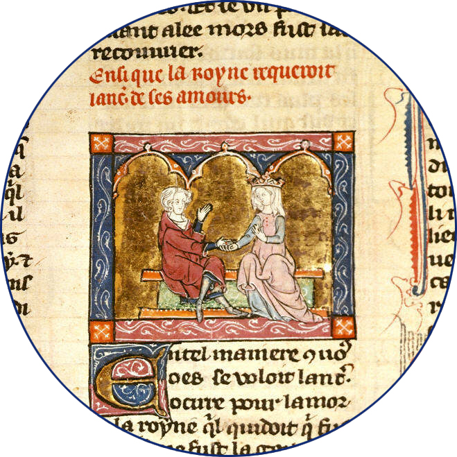 Lancelot and Guinevere, London, British Library, Additional MS 10293, f. 199, detail, Northeastern France or Flanders (St. Omer or Tournai), c. 1315-1325.