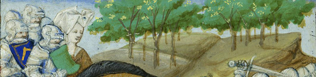 If called upon to imagine a medieval knight, odds are most of us picture someone looking a bit like the knights in this detail from an Arthurian miniature, clad in armor, helmeted, swords drawn for battle. With their visors mostly down, these knights are practically encased in their battle gear.