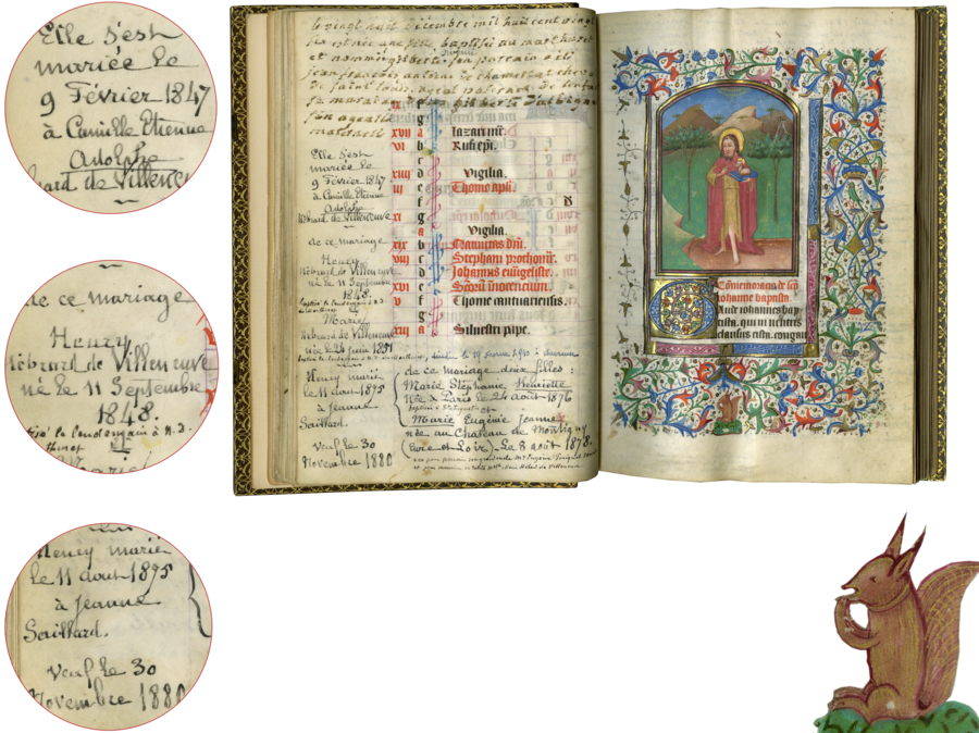 It is little wonder then that many of these books became heirlooms in which families would record notable events. One example is the extensive livre de raison in the Villeneuve Hours.
