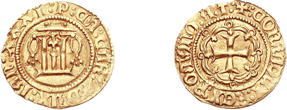 The front and back of a ducat of Paolo Fregoso, coined between 1483 and 1488