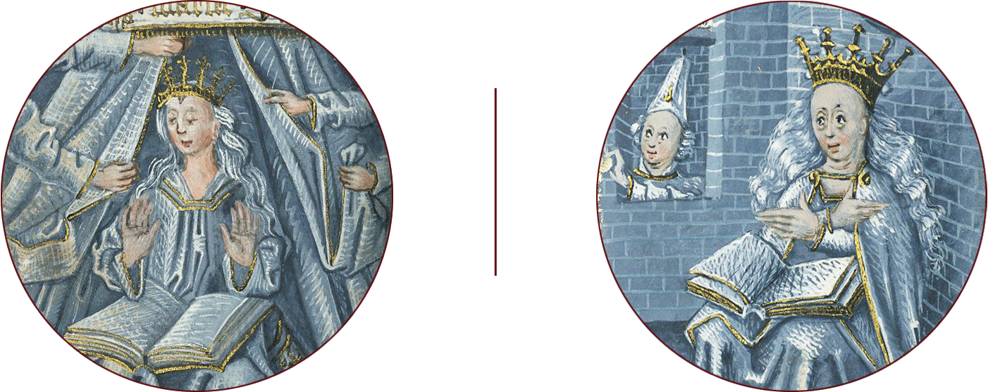 BOH 110, Prayer Book, Belgium, Brussels, c. 1460 and Lille, c. 1475, f. 198 and f. 220v, Virgin seated with a book; Virgin under a baldachin (details)