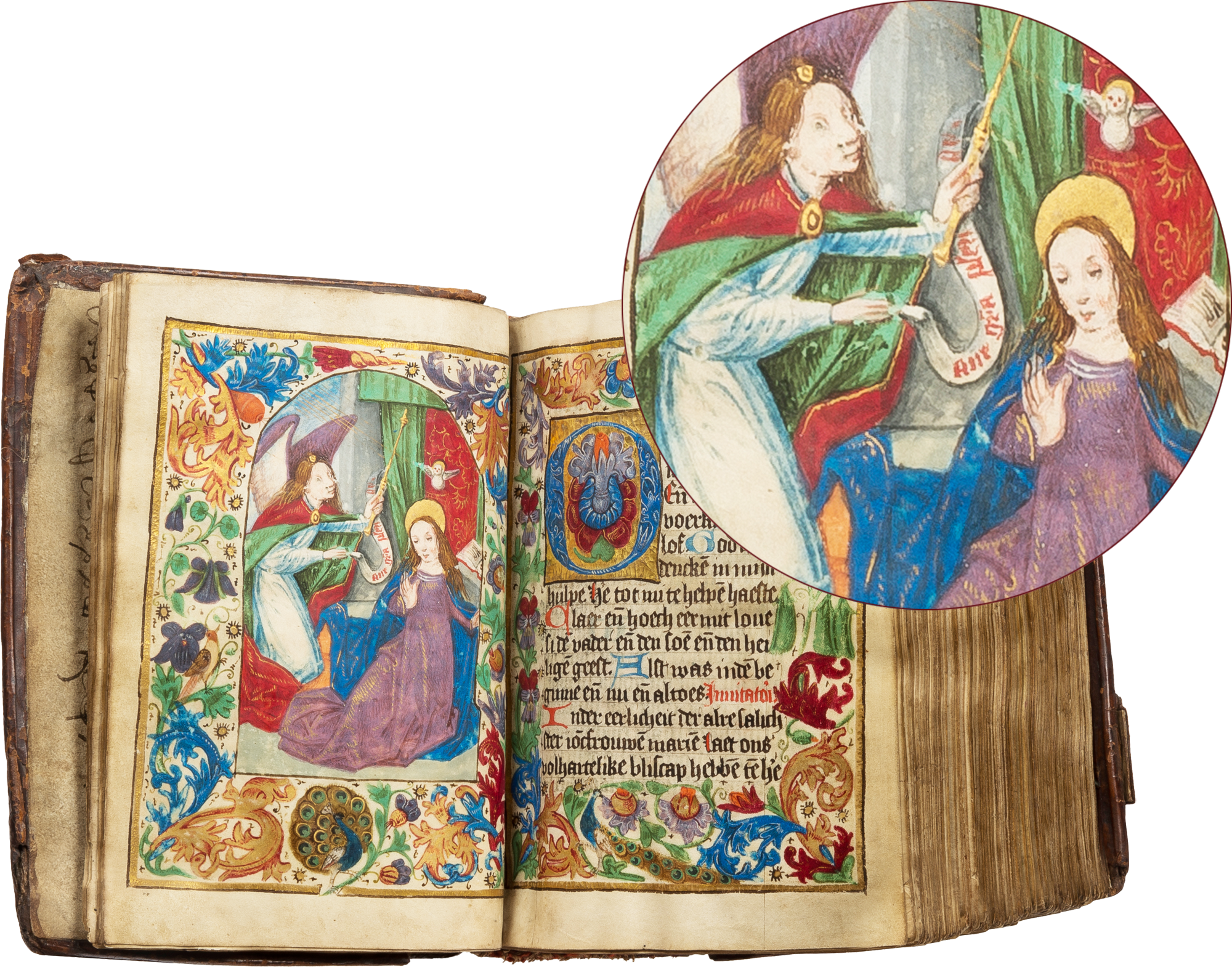 BOH 126, Villeneuve Hours, Belgium, Bruges, c. 1450, f. 53, Annunciation (detail)