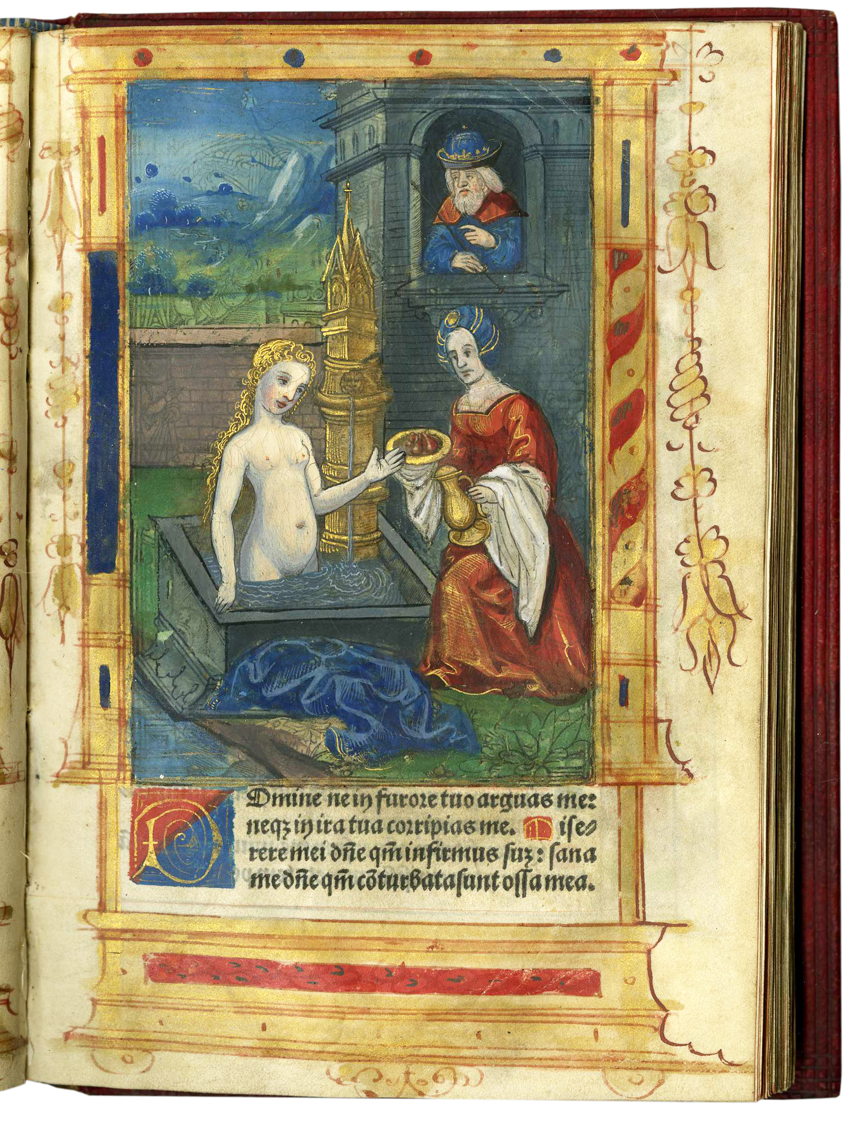 BOH 60, Printed Book of Hours (Use of Rome), France, Paris, c. 1526 [almanac 1526-1541], sig. F8, David observing Bathsheba Bathing (Pichore Workshop for Eustace, in-8°, c. 1508)