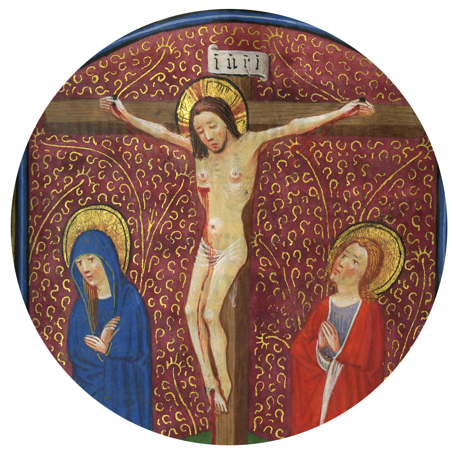 BOH 126, Villeneuve Hours, Belgium, Bruges, c. 1450, f. 33, Crucifixion (detail)