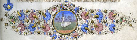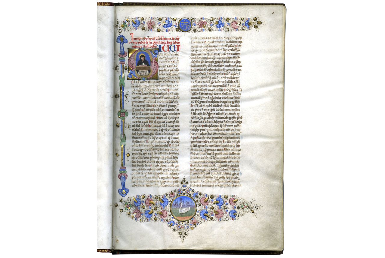 Copied c. 1470 in Venice and illuminated by Leonardo Bellini or a close associate, this large and beautiful manuscript is almost as fresh and clean as the day it was made over five hundred years ago. Who among us can’t appreciate the beautiful script, the large and clean margins, and the beautiful colors and polished gold of the initials (not to mention the swan swimming peacefully in the border on the first page).
