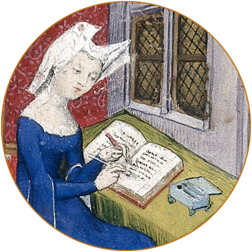 Christine de Pizan in her study, British Library, Harley MS 4431 (detail)