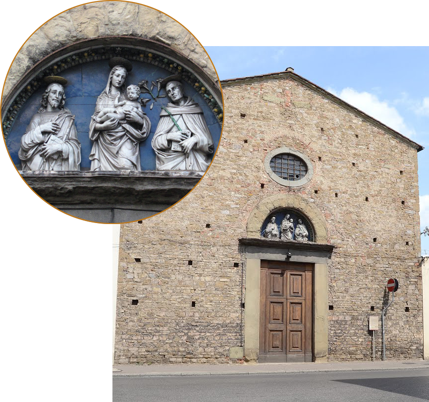 The entrance to the church of San Jacopo di Ripoli, Florence with a sculpture by Giovanni della Robbia.