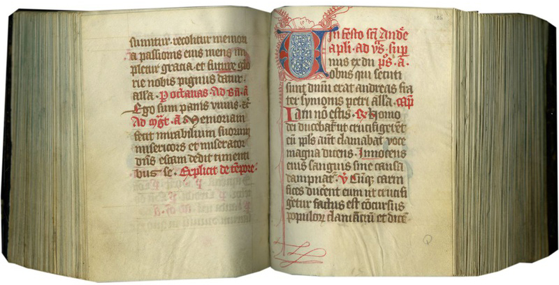 Dominican Breviary, TM 829, ff. 185v-186, Southern Germany or Alsace (Upper Rhineland), dated 1370, with fifteenth-century additions