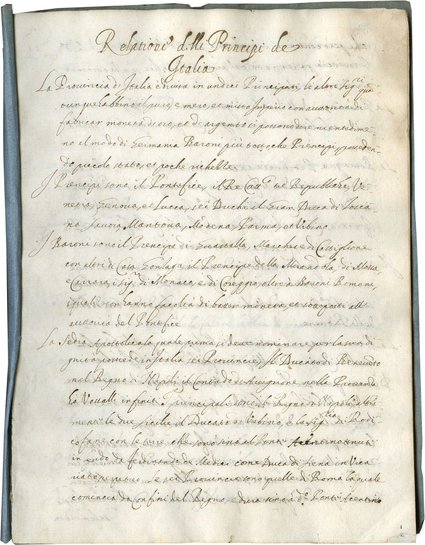 ANONYMOUS, Relationi delli Principi de Italia (Accounts of the Rulers of Italy)
