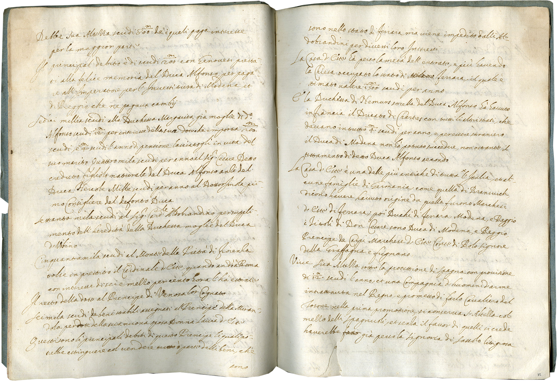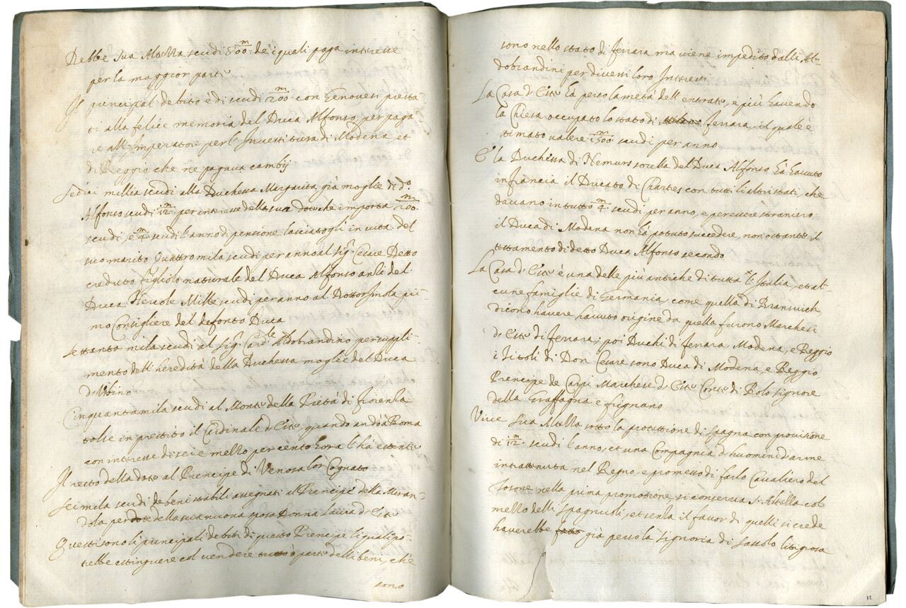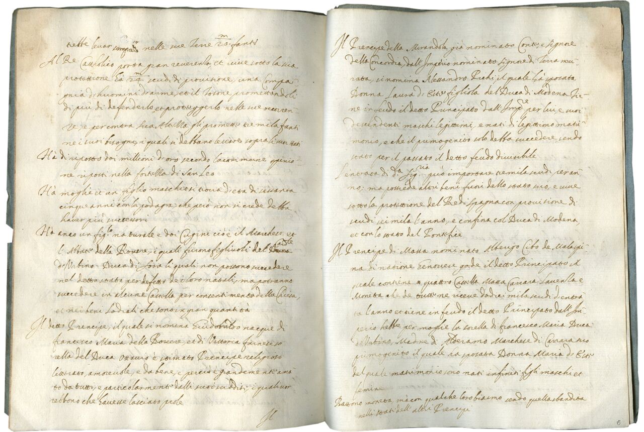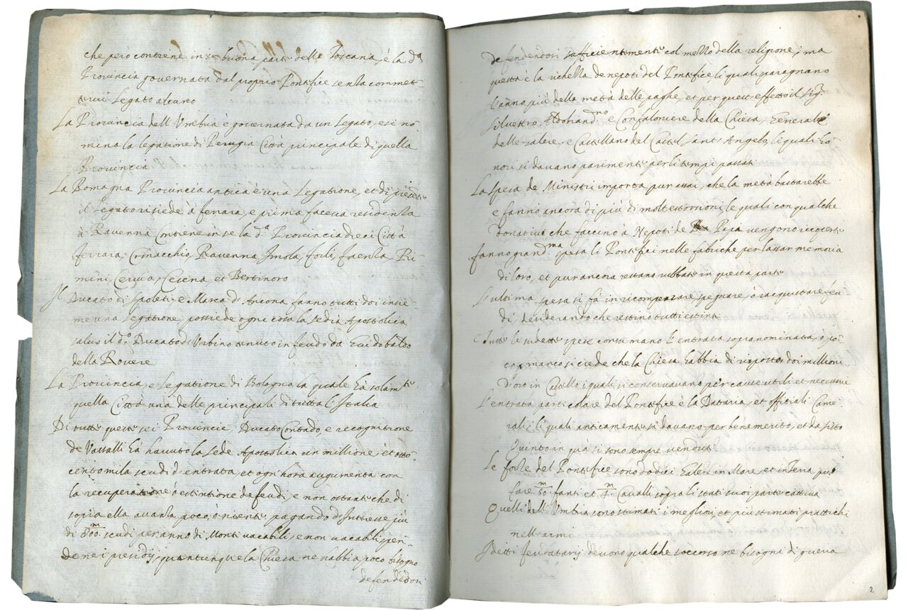 Modern diplomacy with our embassies and their ambassadors come into focus in this modest paper pamphlet. It belongs to an understudied category of Early Modern documents that consist of records known as Relazioni that ambassadors compiled on their travels and residencies, a practice that began already in the fifteenth century. Most likely written by an Italian ambassador of the early 17th century in an irregular cursive script, this set of unpublished diplomatic records offers a snapshot of the Italian political scene at the time of its creation and survives as an excellent reminder of the pervasive manuscript culture that existed after the popularization of print.