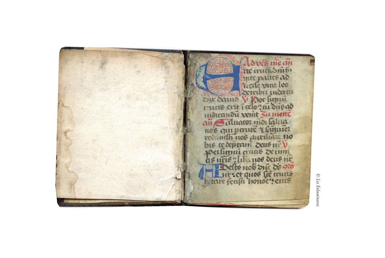 1.The Dominican origin of the manuscript is clearly evident from the liturgical use of the Hours of the Virgin and the Office of the Dead, the inclusion of prayers mentioning St. Dominic and other Dominican Saints and the Saints many Dominican saints in the litany, including Dominic (twice), Thomas Aquinas, Peter Martyr and Vincent Ferrer. Liturgical forms and directions that mention the Nuns and the Prioress, demonstrate that it was written for Dominican Nuns. The manuscript certainly dates after 1455 in the second half of the fifteenth century; Vincent Ferrer was canonized in 1455, and the script suggests that the manuscript was likely copied within a few decades of that date.