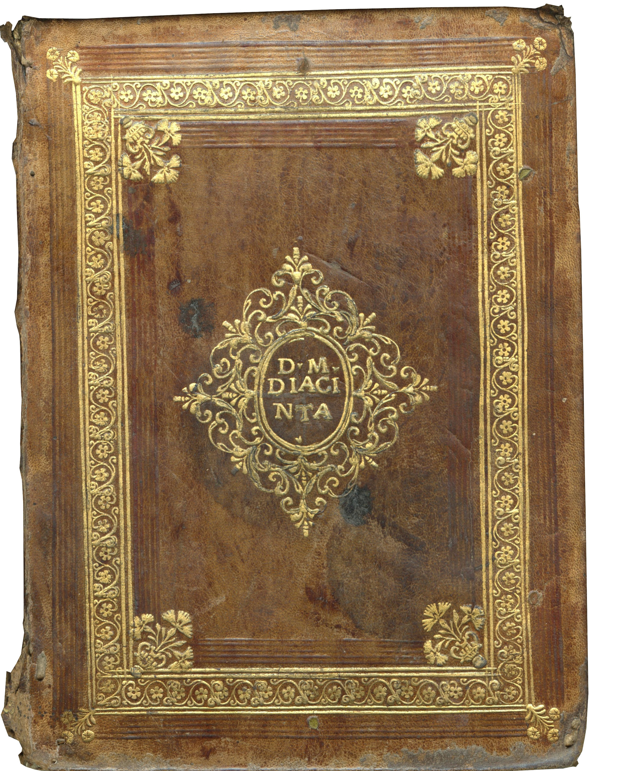 2. The binding is later, probably dating from the seventeenth century, and includes a name on the front cover, “D. M. Diacinta”, with “Pavol Santi” (that is, St. Paul), on the back cover.