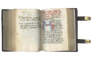 This hybrid volume contains two very rare works on spiritual edification, one printed, another manuscript, demonstrating the way the two types of book production endured side by side at the turn of the sixteenth century. The rare imprint is handsomely illustrated with six woodcuts. The volume can be securely localized to an Augustinian convent in Eichstätt, and it may have been copied there by one of the nuns for their own use. Hybrid volumes are particularly evocative of the interests of the people who created them; here we have secure evidence of reading habits of religious women in sixteenth-century Germany.
