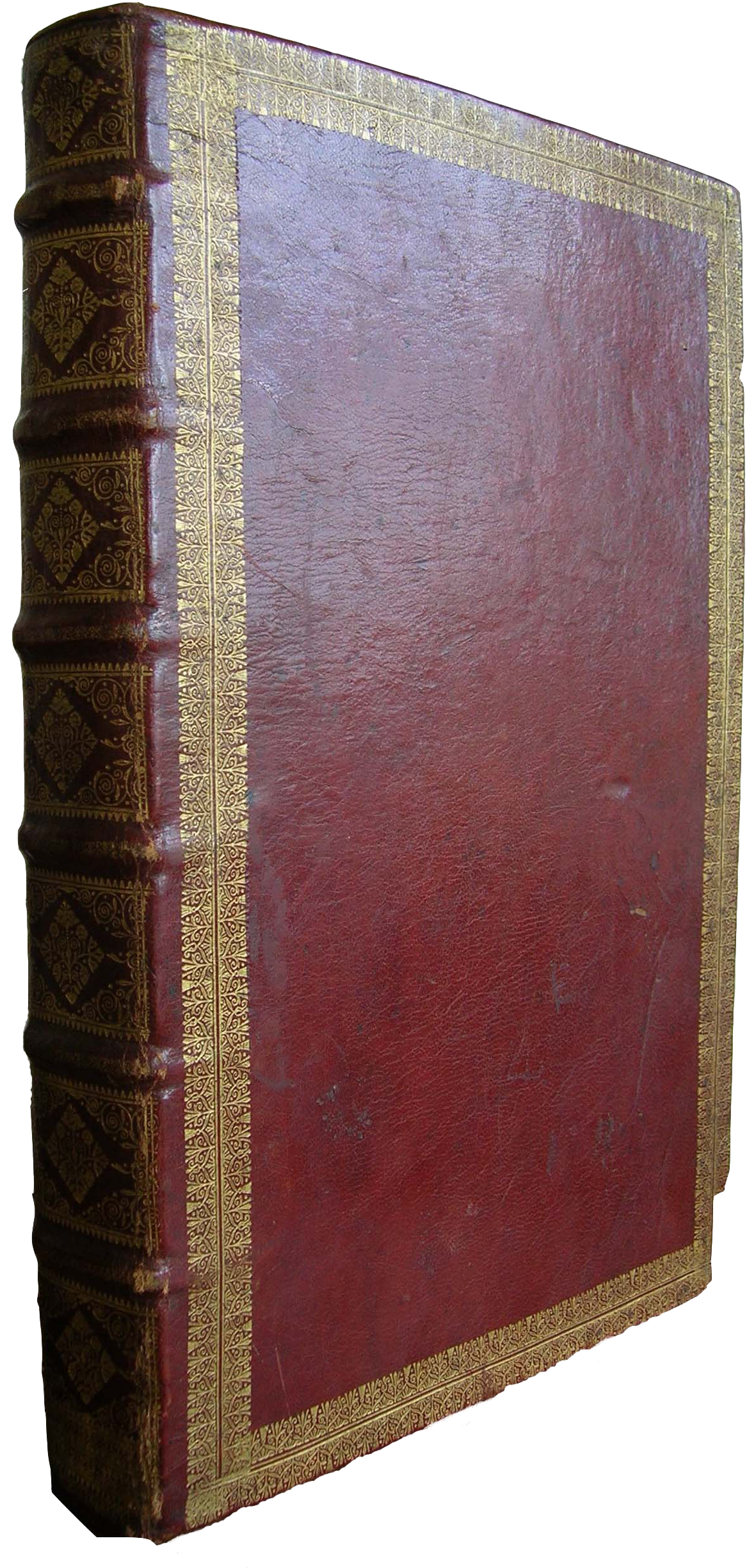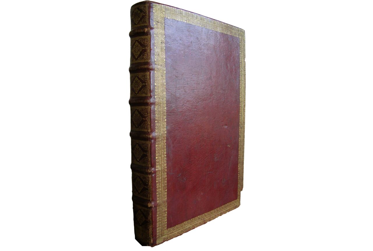 Drawing, one large sheet, 630 x 500 mm.; manuscript: 221 folios on paper (with three watermarks, suggesting Auvergne, before 1685: quires i-vii, a crowned cage and the mark of Benoît Colombier; quires viii-ix, a grape and the mark GG; quire x, the arms of the Medici (Gaudriault, 1995, p. 190, and Delaunay, 1997), first leaf is unnumbered, so foliation runs [0]-220, complete (collation i32[beginning with the first unnumbered leaf] ii26 iii-vi24 vii16 viii26 ix24 x9 [of 10]), written in a cursive script entirely in the hand of the author, in one column of 18-21 lines (justification 155 x 245 mm.), ruled in pencil (ff. 3-144: 30, 155, 40 x 45, 245, 45 mm.), catchwords, signatures trimmed (except f. 162, “c.8”), in excellent condition, apart from one spot on f. 173. Contemporary binding of red morocco with a tooled double floral frieze gilt, spine decorated and gilt between the bands, edges gilt, attributed to Bernard Bernache (Métivier, 1998), binder to the king from 1684 to 1721. Dimensions 335 x 225 mm.