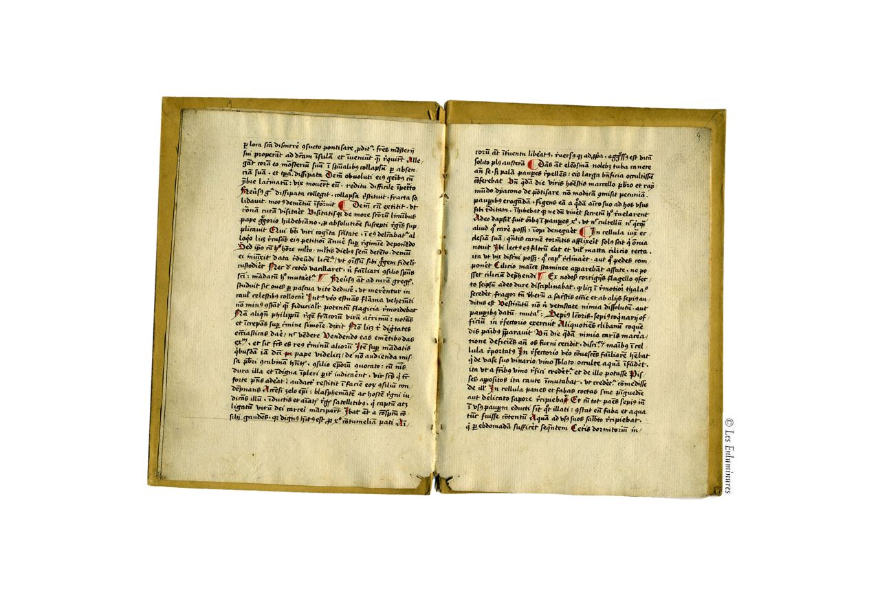 1. Written in France in the last quarter of the fifteenth century, as indicated by the script and the watermark; the watermark is very similar to Briquet 1655 (armoires compliquées où les 1 et 4 sont a la Fleur de lis, aux 2 et 3 au dauphin); varieties of this watermark are listed by Briquet from Northern France in the last quarter of the century.